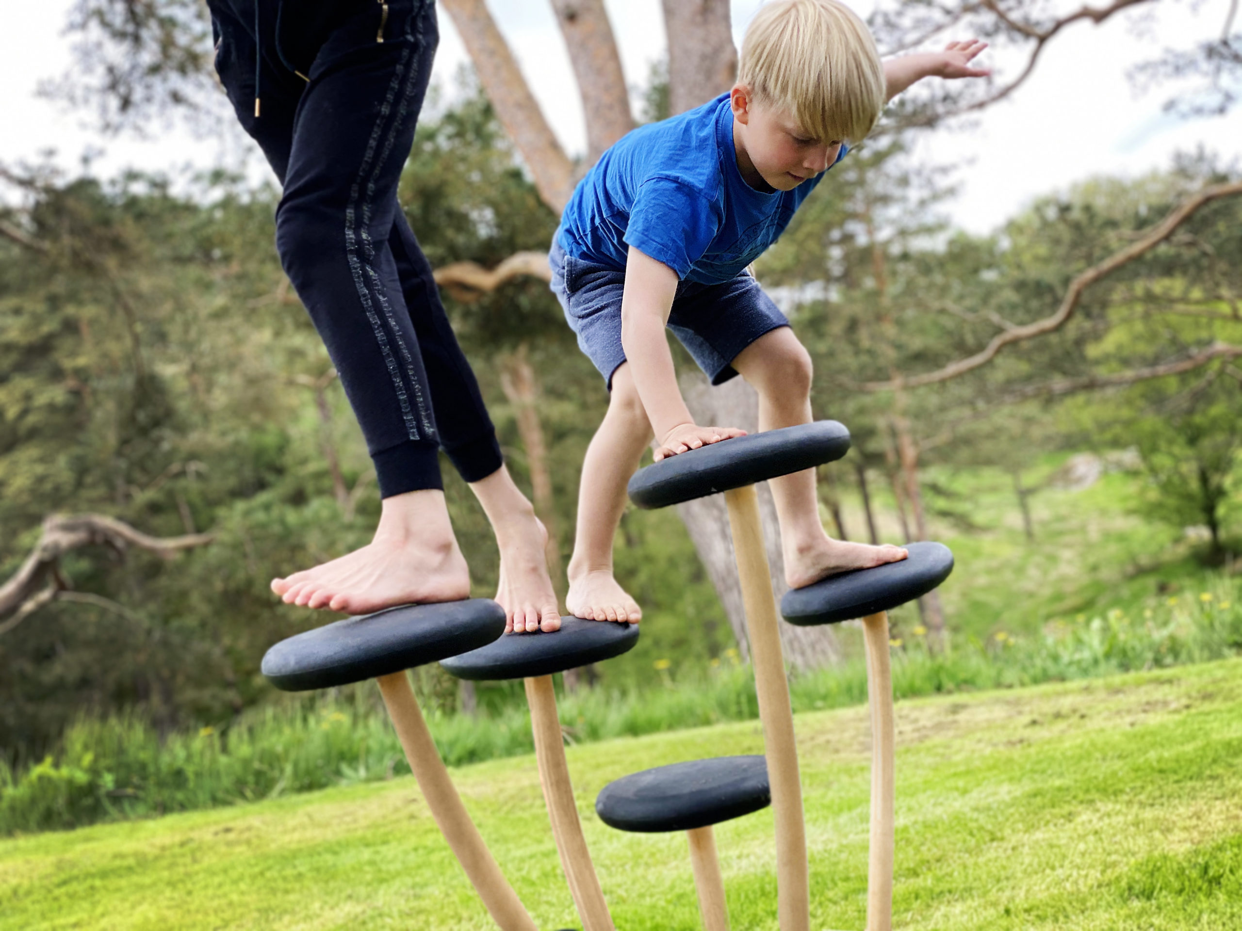 Fungi eignet sich gut für kleine Kinder, die auf die Pads klettern werden, aber auch für ältere Kinder, die balancieren, springen und rennen möchten. Die Pads sind mit dickem Naturkautschuk beschichtet und werden von robusten Stahlrohren getragen