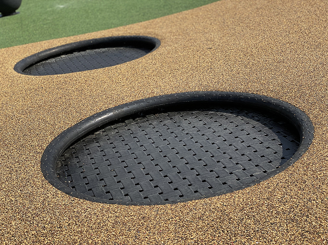 The in-ground trampoline has a strong appeal. It adds weightlessness and pace to the play, and when you put multiple trampolines in a series or combine them with other equipment, they are even more captivating.