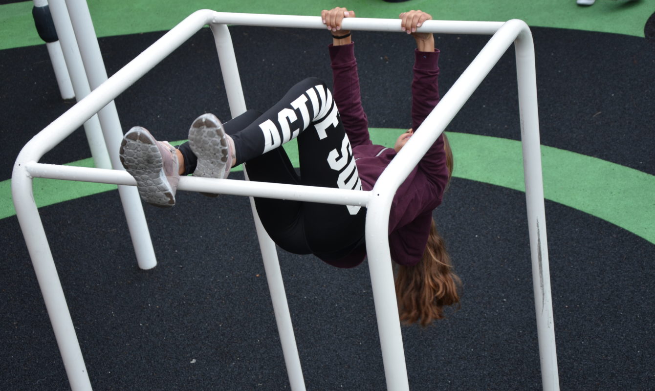In the Motor Skill Park™️, the play equipment is organized as an obstacle course. Mastering slacklining, running across tilting and rotating balance balls, or completing 8 pull-ups are achievements to carry with you beyond the 10th grade.