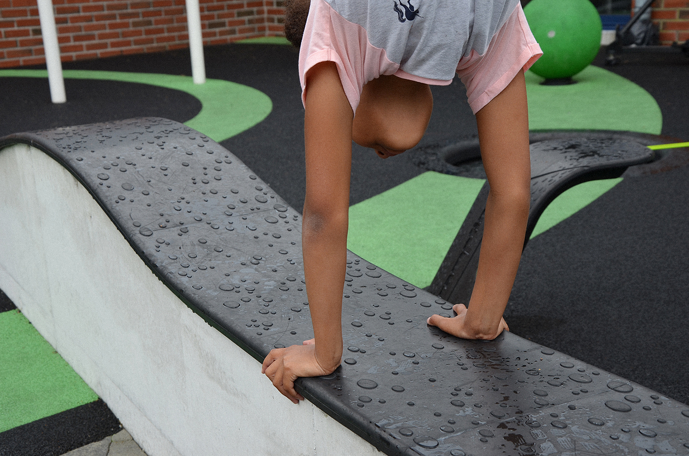 The Motor Skill Park™️ is placed in a sheltered corner of the schoolyard, covering an area of approximately 10 x16 meters. It is designed to include many youths simultaneously, creating a unifying and intimate environment where everyone can participate. The design of the playground and activity equipment was provided by Rampline, assisted with construction and groundwork from local contractors.