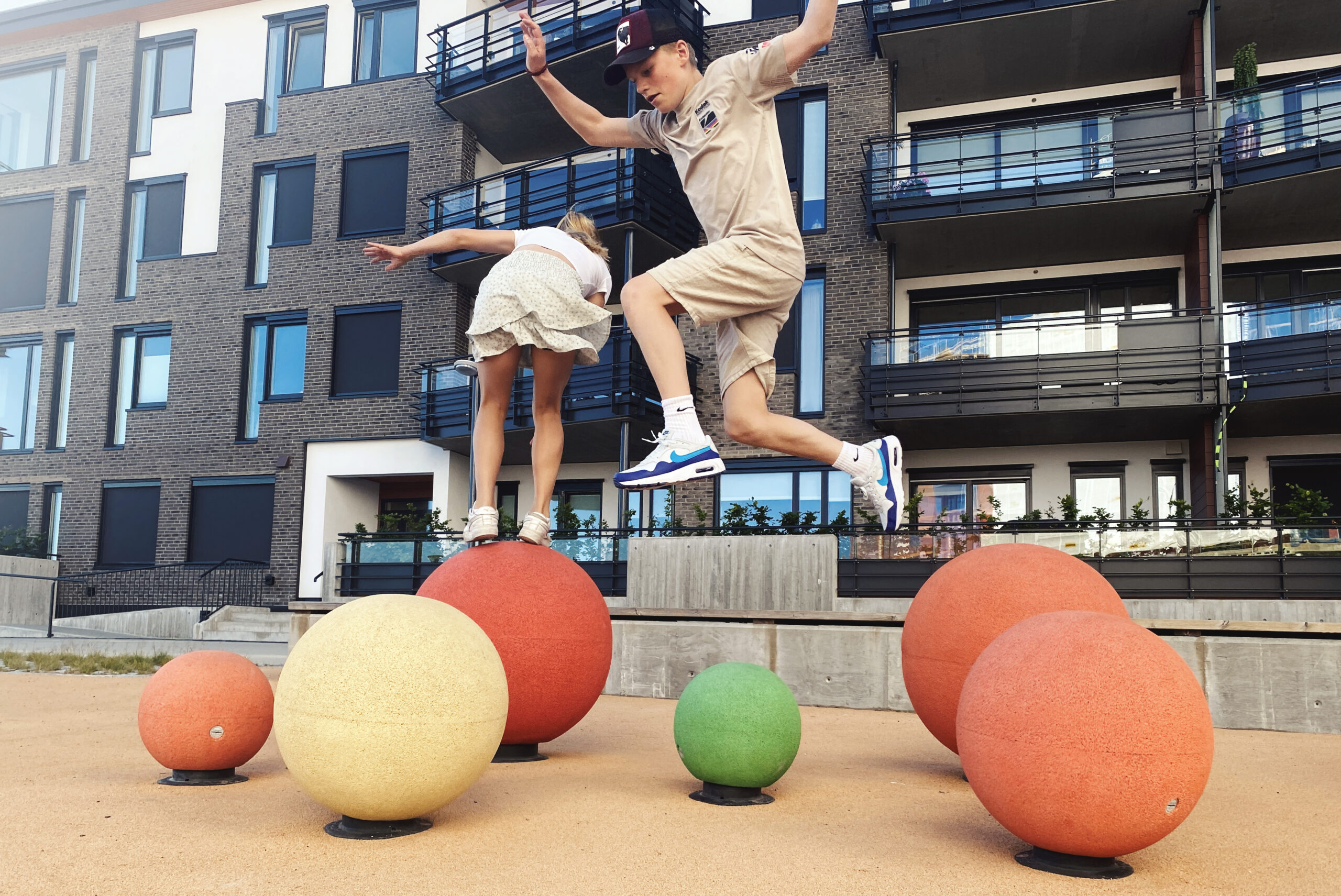 - For barn opp til 6 år, bør kulene plasseres på minste påkrevde avstand. Dette gjør det mulig også for de minste skolebarna å hoppe eller løpe fra kule til kule uten å trå i bakken.
