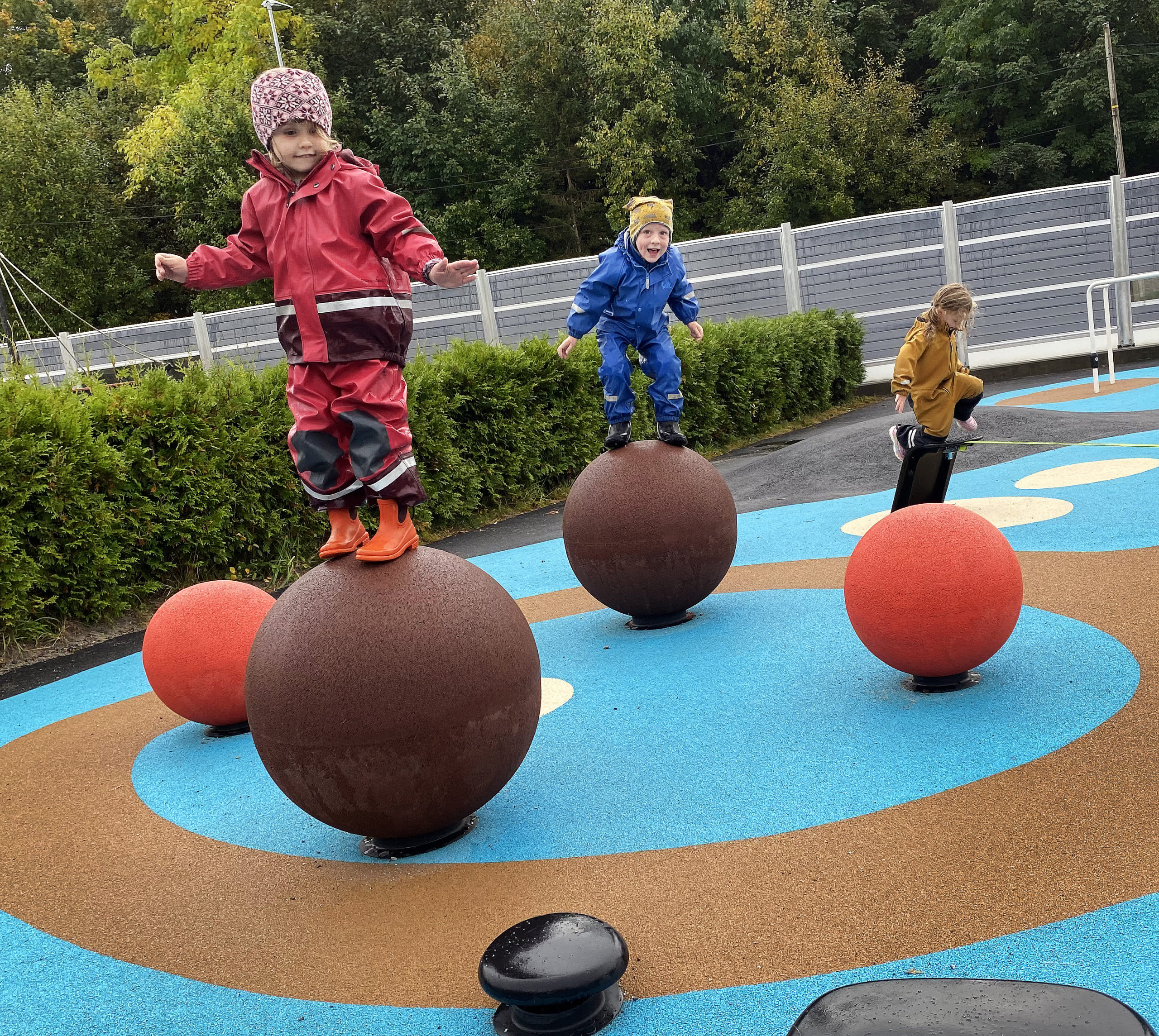 Responsen fra balanselinen ved å sitte, ligge eller gå på linen setter både kropp og sinn i god aktivitet. Balansekulene vipper og roterer – noe som krever barnets oppmeksomhet og respons. Hoppesteinene sammen med de polstrede balansebommene trigger til fart og koordinasjon. De solide trampolinene gir barna actionfylt lek og de kubeformede Rampit-stativene gir barna den herlige klatre- og buldreleken som setter hver minste muskel i sving. Tilbakemeldingen fra de ansatte er at apparatene i Motorikkparken naturlig innbyr til samarbeid. – Det er fint å se at barna hjelper hverandre for å mestre nye utfordringer i leken, sier daglig leder Randi Alnes.