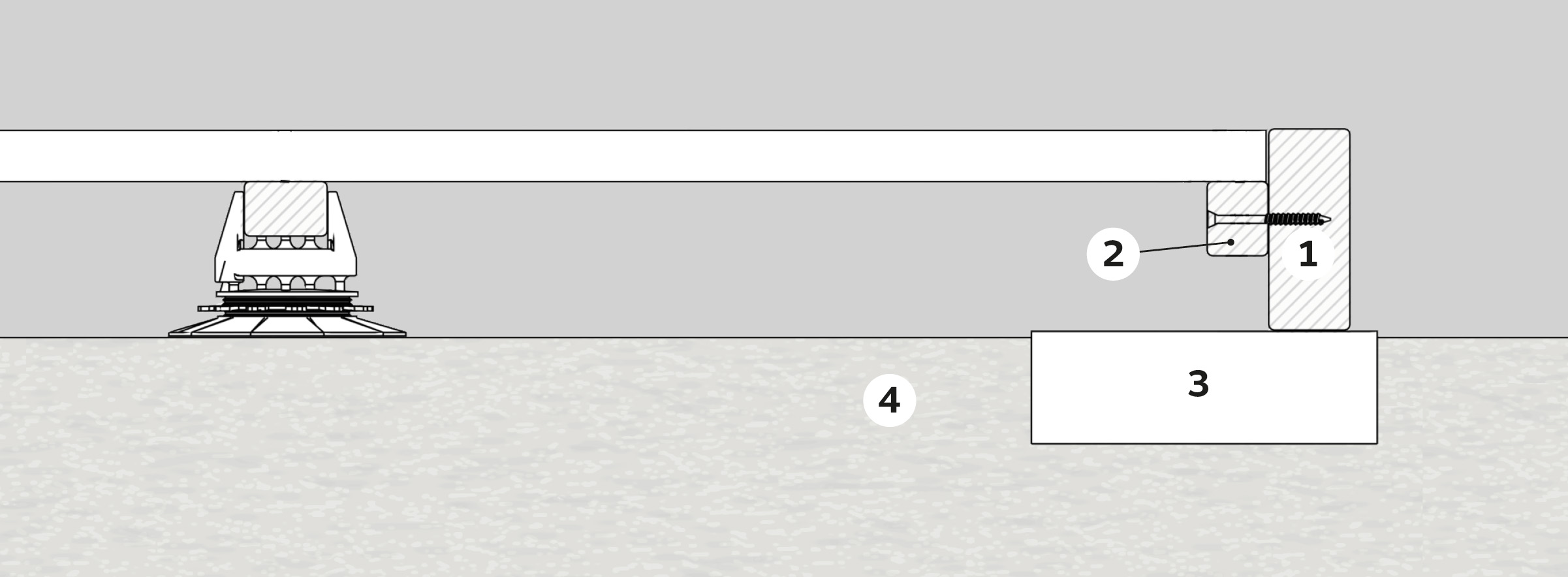 1. Stålprofil 2. Vekstlag/gress 3. Lekt 30×48 mm 4. Betong