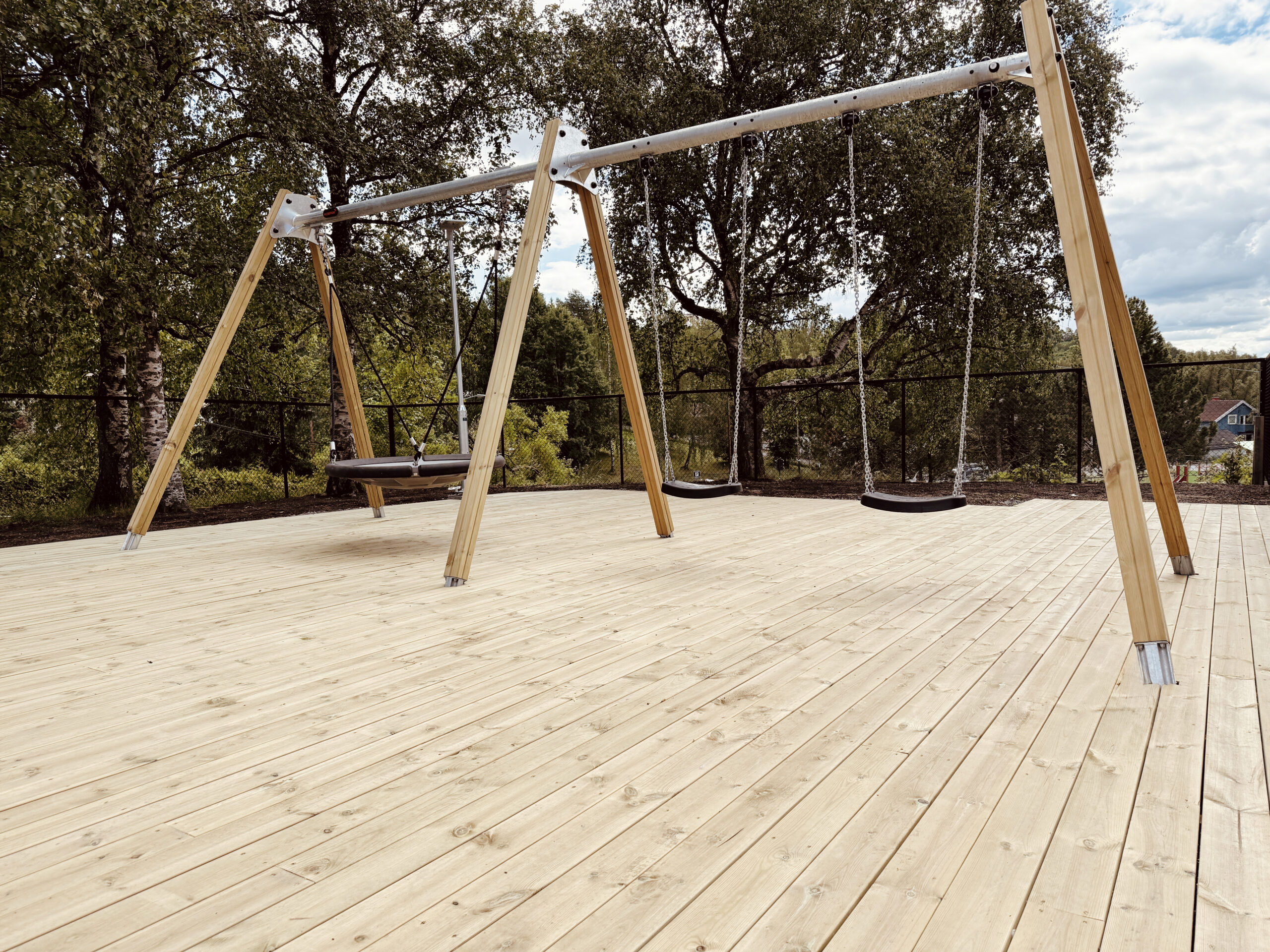 - Merk at lekeapparatene monteres som vanlig med innfesting i underliggende betongfundamenter
