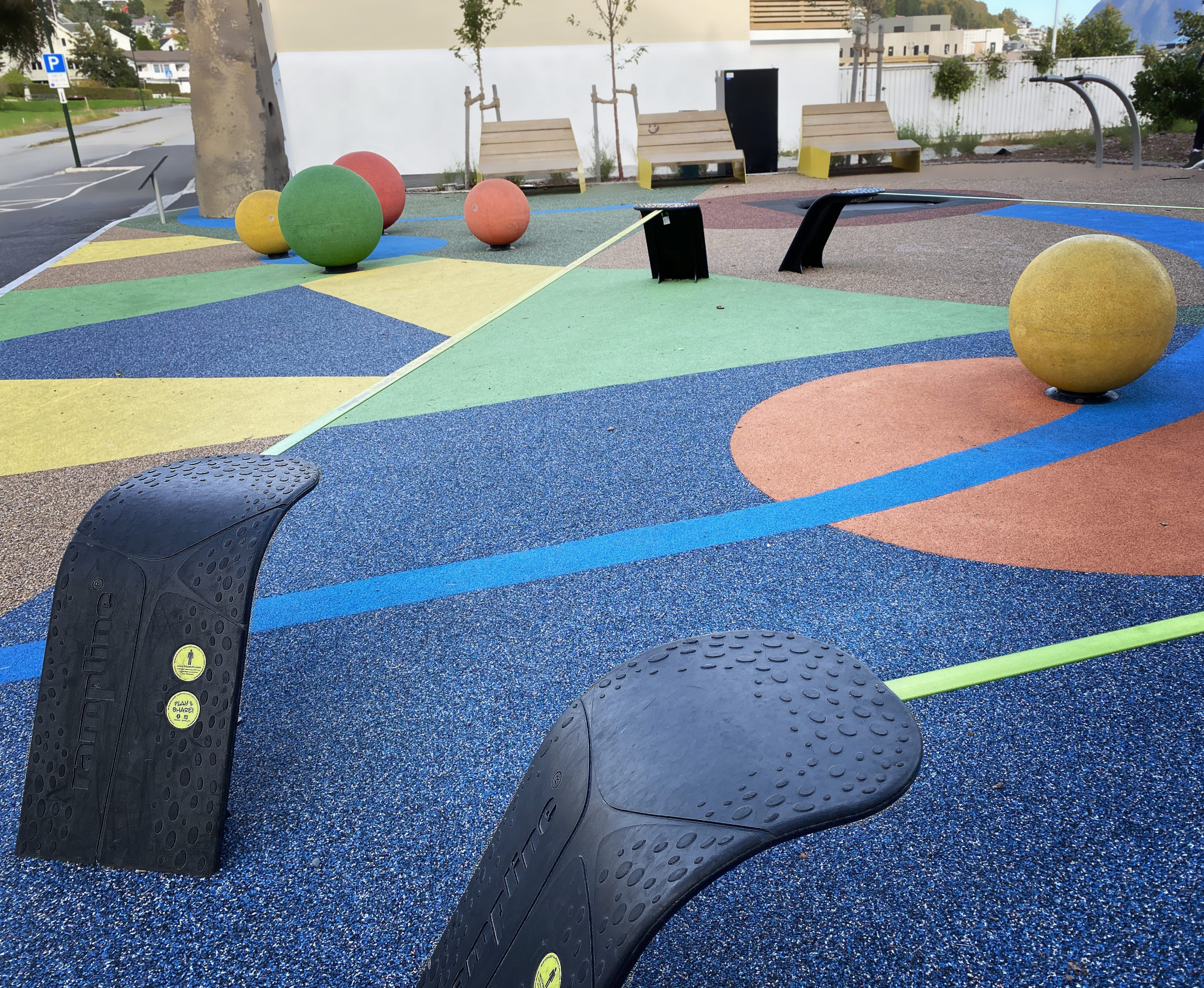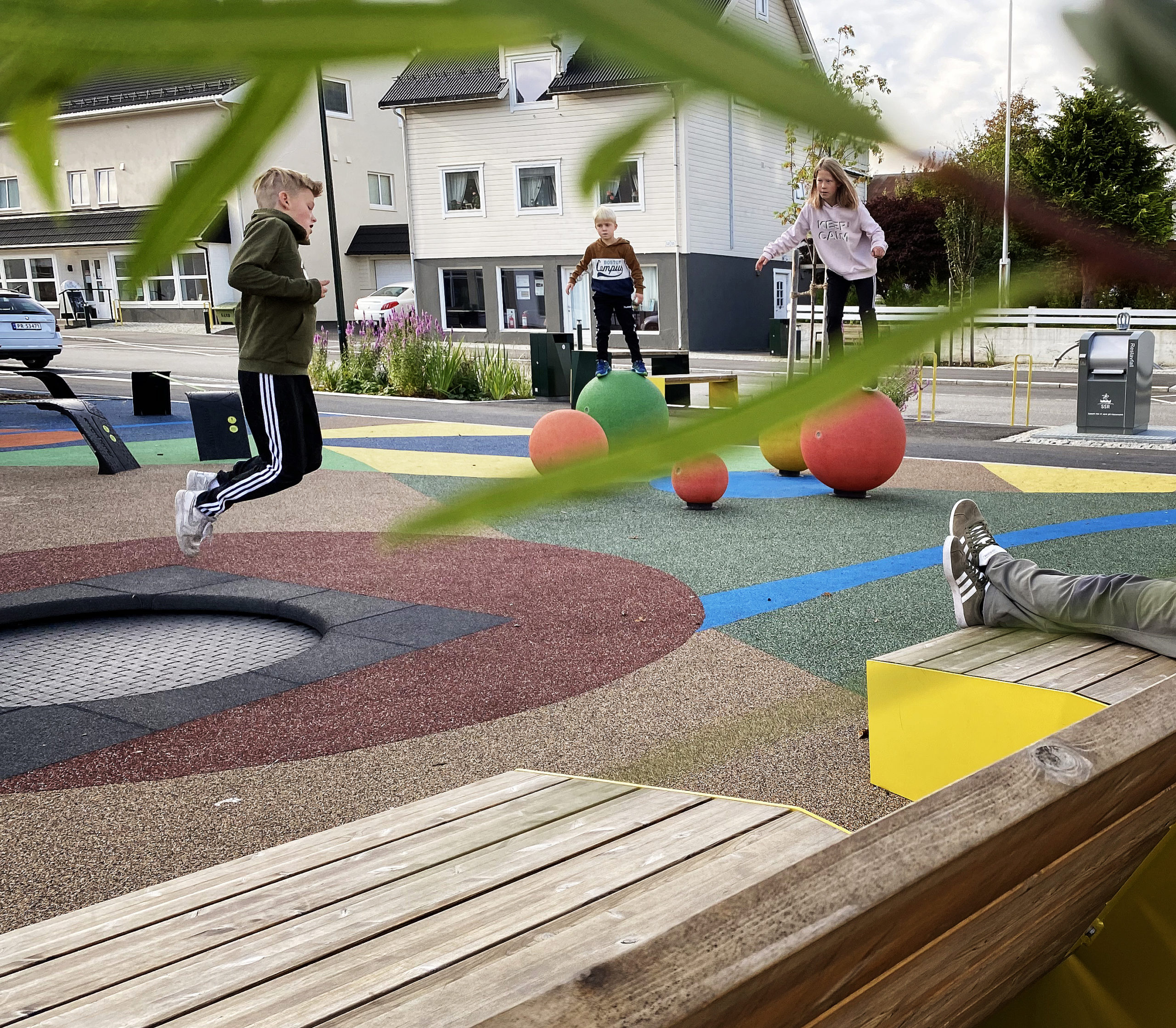 Här finns något för de allra yngsta såväl som för ungdomar och vuxna. Landskapsarkitekturen och detaljplaneringen är utförd av Norconsult Sunnmøre. Bänkarna i aktivitetsområdet är från Vestre, och arbetet är utfört av Tilseth landskaps- och entreprenadfirma.